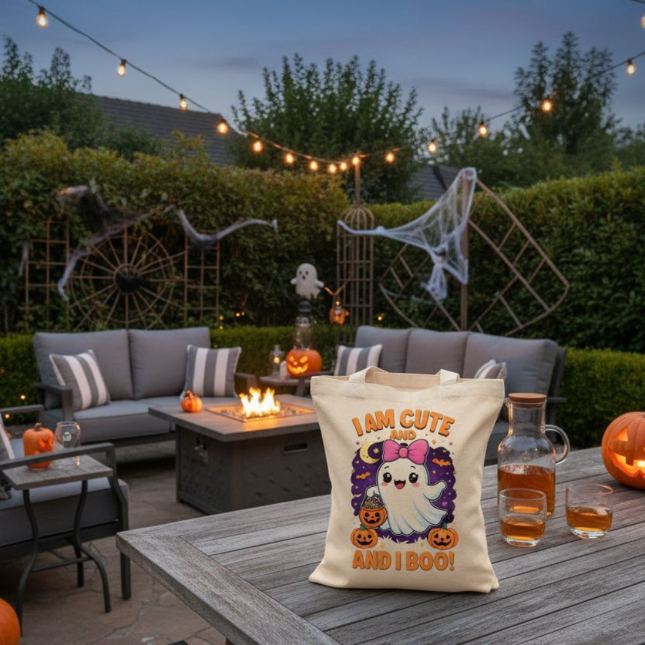 Enjoy this fun and cute tote bag for the Halloween night and for the fall season. Perfect for carrying your essentials while adding a touch of spookiness to your outfit. Ideal for adults looking to celebrate Halloween in style.